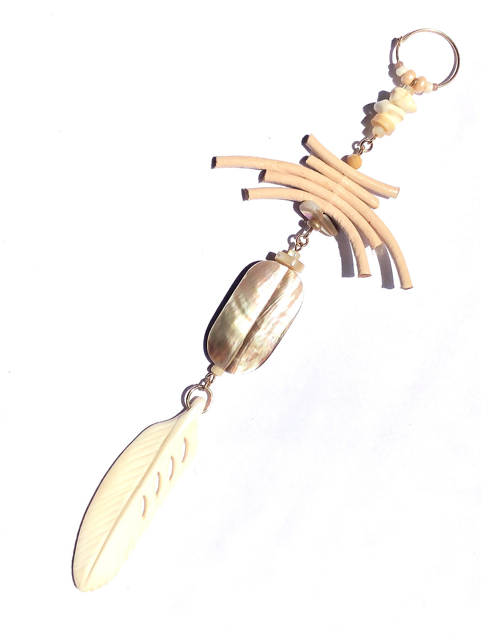 taking flight abalone, bone & cream leather shoulder duster single earring